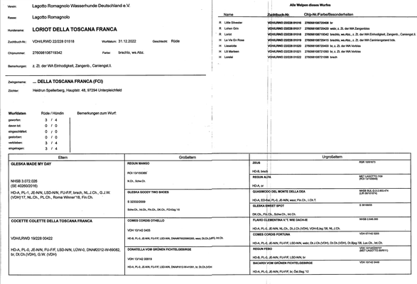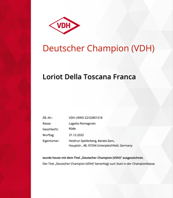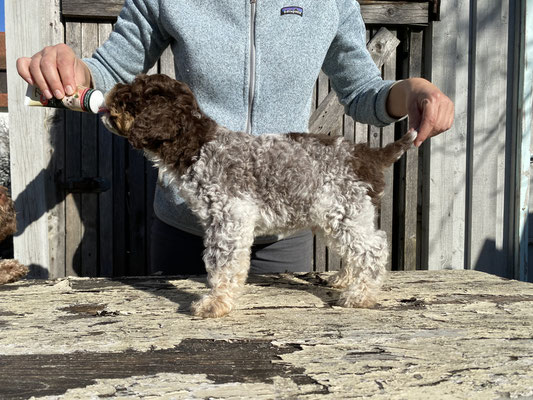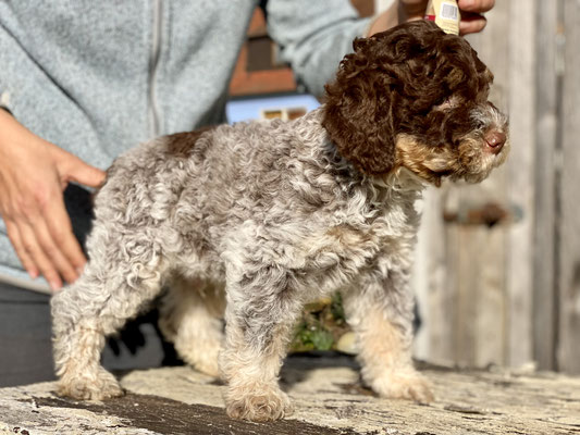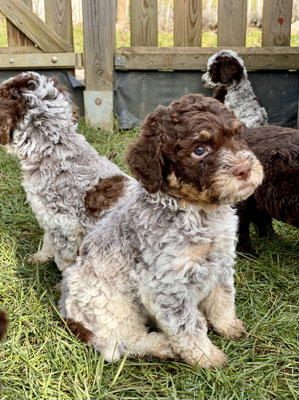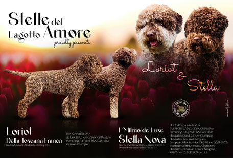 Mitte September wird der Nachwuchs im Kennel Stelle del lagotto amore erwartet. Am 15.September 2025 sind nahe Budapest 7 Welpen von Loriot geboren. Es sind 4 Rüden und 3 Hündinnen.
